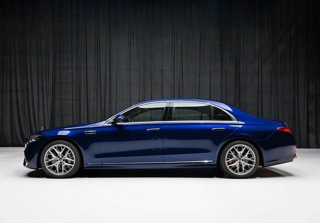 车身侧面增加了智驾传感器,并配有迎宾光毯投影。长轴版的车身长度增加了14毫米,达到5304毫米,尾部则换装了星徽造型的尾灯。